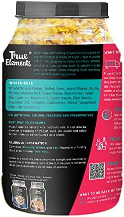 With trail-mix-like consistency, True Elements Quinoa Millet Mueslis is a convenient snack to consume right out of the bag. Munch on it while enjoying a movie or working hard.