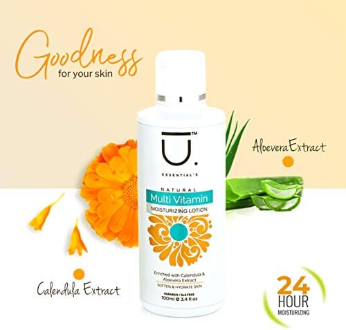 U ESSENTIAL’S Moisturizing lotion contains unique combination of Emollient, Humectant & occlusive agents. the naturally derived ingredients restores the softness and suppleness of the skin. STORAGE : Store below 25 . do not freeze. Keep the container tightly closed after use.