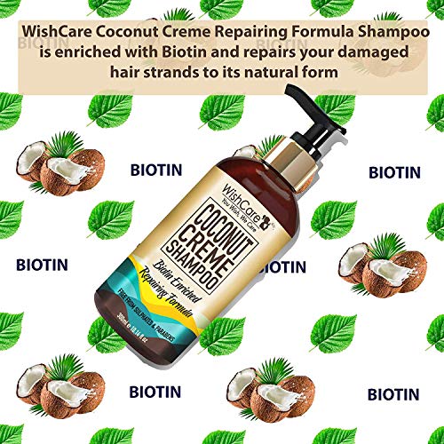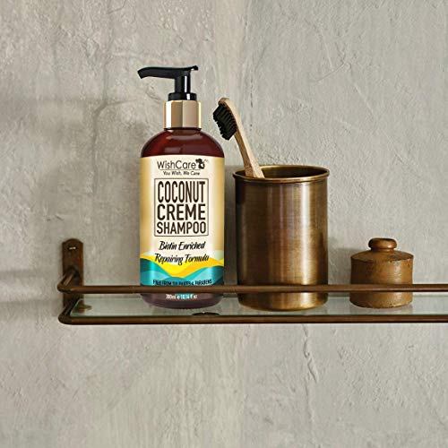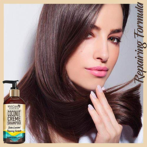 🥥 PREMIUM NATURAL INGREDIENTS – WishCare Coconut Crème Shampoo is infused with premium quality natural ingredients such as Coconut Milk, Coconut Oil, Biotin, Shea Butter, Macademia Oil, Seabuckthorn Oil and other superfood for your hair which will add shine, strength and beauty to your hair. This shampoo is a perfect dose for your undernourished and damaged hair.